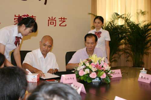 本网讯 (记者 一湄) 广东省东莞市文联主席刘锦明接过了我院品牌与战略发展部兼党委宣传部部长、中国作协会员许锋递交过来的合约,在一片热烈的掌声中签下了《李章达评传》的研究与创作项目,标志着第二批东莞历史人文创作项目签约仪式正式启动。