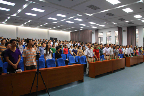本网讯 (记者 罗修坤)9月21日下午,院长杨利博士,党委书记齐志儒,副院长成侃、刘春雨、张瀚涛、赵宇辰和全体教师齐聚刚投入使用的F座218报告厅,共同庆祝第28个教师节。