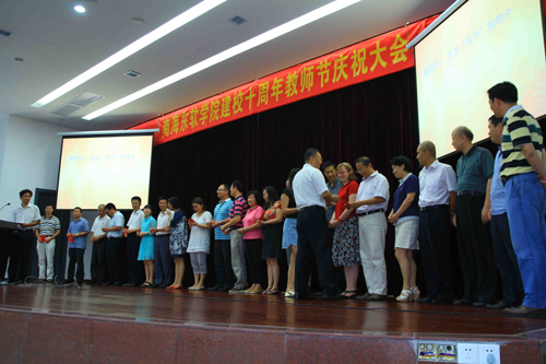 党委书记齐志儒致开幕词,“我代表学院领导向在教育、教学一线辛勤耕耘的全体老师,向为教育事业默默贡献的全体员工,致以节日的祝贺和诚挚的问候。” “身为老师任重而道远,我们一定要认真践行2011年12月教育部发布的《高等学校教师职业道德规范》,爱国守法、敬业爱生、教书育人、严谨治学、服务社会、为人师表。”