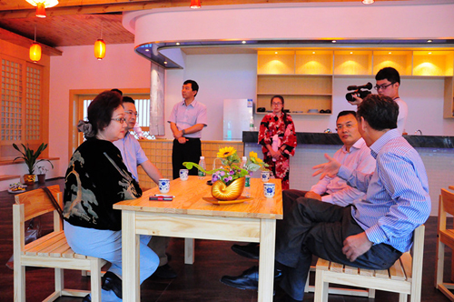 刘积仁老师随后视察了新图书馆、英语实践教学咖啡厅、日语实践教学文化室以及校园整体环境等,提出要紧抓一个“酷”字,建设充满创意的大学校园。