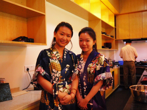 商务日语专业的陈碧娟同学和孔绮琳在接受记者采访时她们正在为顾客烹炒咖喱饭和制作寿司,乐在其中的她们认为,乐樱屋提供了一个体验、学习日本文化的平台,能够亲手将“劳动成果”为顾客奉上,让内心有了一种“小满足”。她们还告诉记者,乐樱屋摆放的插花全部是日语系的同学小实践学期的作品,插花上的卡片还留下了作者创意时的构思及插花所蕴含的意义,看到自己的作品展示在这里,自豪之情油然而生。