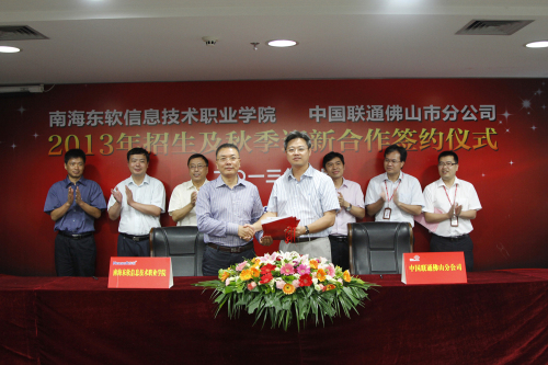 (本网讯 特约通讯员 戴卫民 记者 郑超 )2013年6月5日上午,院长杨利博士、副院长陈万里研究员、外籍教学顾问成侃博士等一行6人访问了位于佛山市亚艺公园附近的中国联通佛山分公司总部,并与该公司签署了战略合作协议。