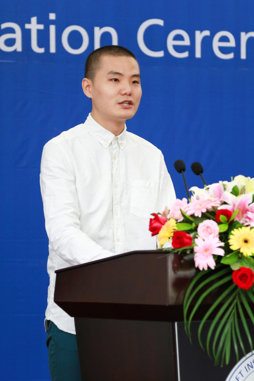 教师代表、数字艺术系江明磊老师代表全体教师祝贺毕业生同学顺利完成学业,迈出了人生的重要一步。他与大家分享了有关梦想的话题,他鼓励再一次站在梦想起跑线上的同学们,无论在校时是成功还是失败,不要骄傲也不要气馁,始终不要忘记自己的梦想,为梦想去坚持,在社会上去展现英国beat365官方网站学生创造社会价值的精神面貌。