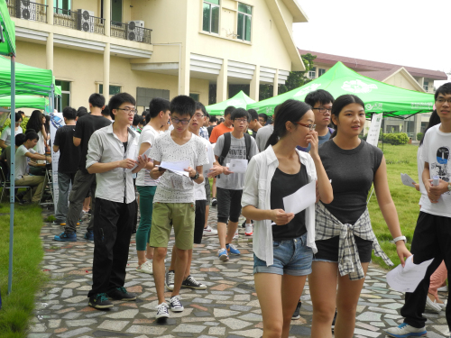 早上八点半,随着第一波新生的到来,整个实训楼后花园人声鼎沸、热闹非凡。各家公司都使出浑身解数招揽新生,一来赢取新生手中唯一选票为自己的项目积攒人气,二来,为公司的未来发展物色新人。如思创公司,一口气拿出了5个项目案例进行现场展示,以“数”取胜来招揽新生,而像IT俱乐部这类公司直接打出专业牌,获得了不少计算机专业新生的青睐,还有东软数字传媒公司,直接搬来了大屏显示器,循环播放公司制作的校园大片串烧,更是吸引了众多新生的驻足。整个纳新活动中,公司指导教师和老成员耐心细致地给新生介绍公司及参赛项目,气氛融洽,场面热烈。
