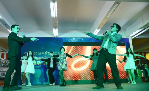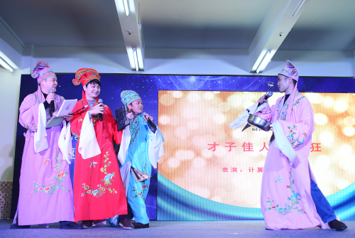 看到充满活力的同学们的热情表演,老师们也不甘落后,计算机系和大学生创业中心的老师和同学们带来了精彩的《才子佳人也疯狂》,身着古装的四大才子,满口却是网络语言。去年领了大奖的白娘子,穿越到今年却成了男子,诙谐的反串,令人瞠目结舌的舞蹈地板动作,让现场掌声雷动。