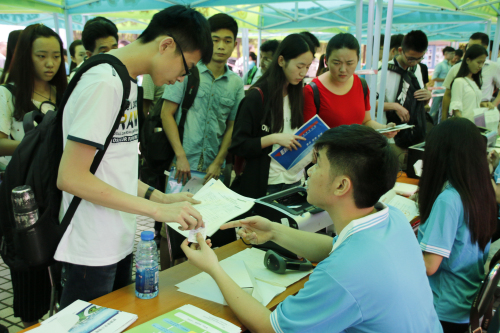 记者在报到现场发现,2015级新生大多集中在上午8点半至11点半间“扎堆”报到,不巧的是,期间迎来不期而遇的大雨,大雨持续两个多小时,不时伴有大风,然而报到现场井然有序,没有出现拥挤等现象,这既归功于学院各部门的紧密协作,以及学生志愿者的热情引导、服务,同时网上报到系统所做出的贡献也不容小觑。