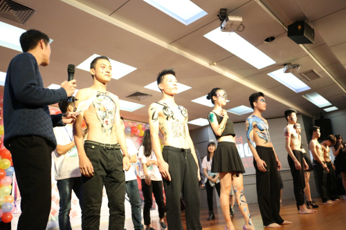 艺术节的压轴戏当数人体彩绘和Cosplay表演,15级新生们积极参加,主动献身做人体彩绘模特,让观众们尖叫不已。在周丹敏同学声线细腻的歌声配合下下,模特们走起了T台,他们身上精美的图案,丰富的色彩,让人不禁大赞数艺系同学们心灵手巧。随后,诙谐有趣的小品《如此医院》又让所有人开怀大笑,演员都有赵本山的腔调,精彩的桥段让观众津津乐道,意犹未尽。数艺系党总支书记闫远兆对艺术节的节目评价都很高,他提议《人体彩绘》该节目要在下个月学院教职工的茶话会上表演,把学生的创意分享给更多人。