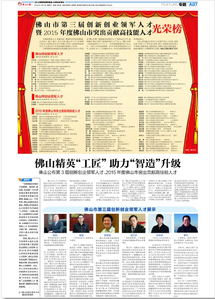 本网讯 日前,佛山市人才工作领导小组办公室公布我市第三届创新创业领军人才名单,院长杨利博士当选。