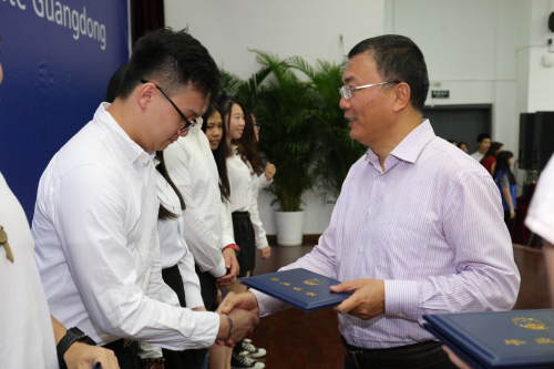 伴着热烈而欢快的音乐,左斌书记为优秀毕业生颁奖,并合影留念。