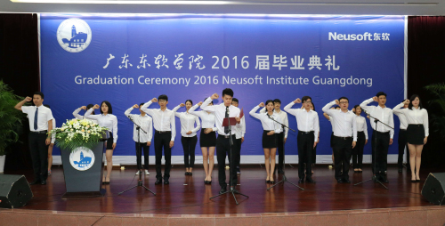 毕业典礼在感人的主题视频中拉开帷幕,同学们通过精心制作的视频,记录了在东软的青春岁月,描绘了对美好未来的憧憬,为2016届毕业生送上的祝福。随着主持人宣布毕业典礼正式开始,全场起立,奏唱国歌。