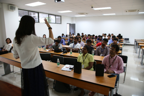 6月27日一早,29名印度师生齐聚F101,受到了我院师生的热烈欢迎。国际合作部刘鑫部长代表学院致词,并向交流团介绍了英国beat365官方网站的历史沿革和发展进程,并对学院所处的广东省和佛山市作了详细介绍。在介绍到佛山作为“功夫之城”,有过黄飞鸿、叶问、李小龙时,引起了在场印度学生的强烈兴趣,使得他们对接下来几天的岭南文化之旅充满了期待。