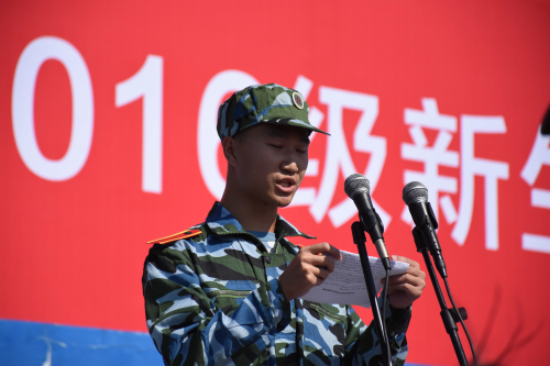 信管系工商管理专业本科一班的吴俊杰同学代表2016级新生发言,他代表所有参训学生承诺,一切行动听指挥,服从管理,认真训练,向教官学习,认真对待每一次训练,时刻以一名军人的标准严格要求自己。
