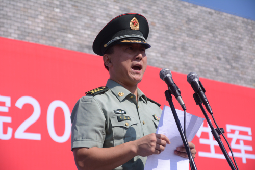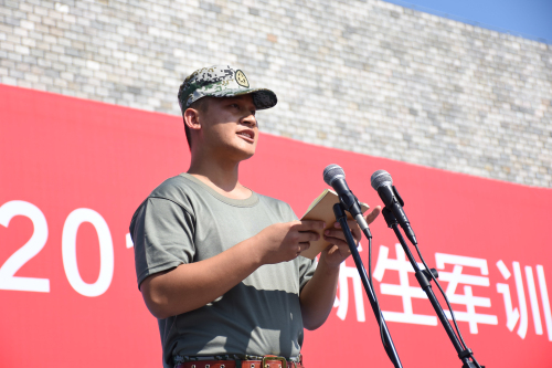 教官代表黎德劲代表承训教官发言,他代表所有承训教官对参训学生提出要求,端正思想,加强组织纪律,不怕困难,艰苦训练,同时也表达全体承训教官将提高认识、言传身教、以身作则、科学施训的决心——“给我一个兵,还你一个将”!