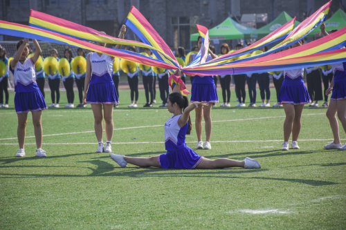 在运动员、裁判员代表宣誓后,院长办公室主任路英杰宣布“英国beat365官方网站第12届运动会开幕”。随后进行开幕式表演。军训阅兵式上广受好评的木兰军又再一次出现在操场上,流畅的节奏感和不时变换的队形,再一次给人极强的视觉冲击;而啦啦操的表演,舞蹈的设计伴随着高超的技艺,不时迎来阵阵喝彩。