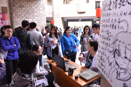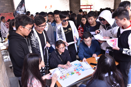 本网讯(记者 庄婉萍 吴丽敏)12月14号下午,由灰翼动漫社举办的主题活动——灰翼动漫•岁末祭在C栋中庭举办。现场环绕在极具动感的动漫音乐,工作人员以各式动漫人物服饰装扮自己,写祈福卡片、抽取运气签,你猜我画、谁是卧底、动漫猜歌大作战……各类游戏让让亲临现场的同学们仿佛身临动漫的世界,玩的不亦乐乎,大呼过瘾。