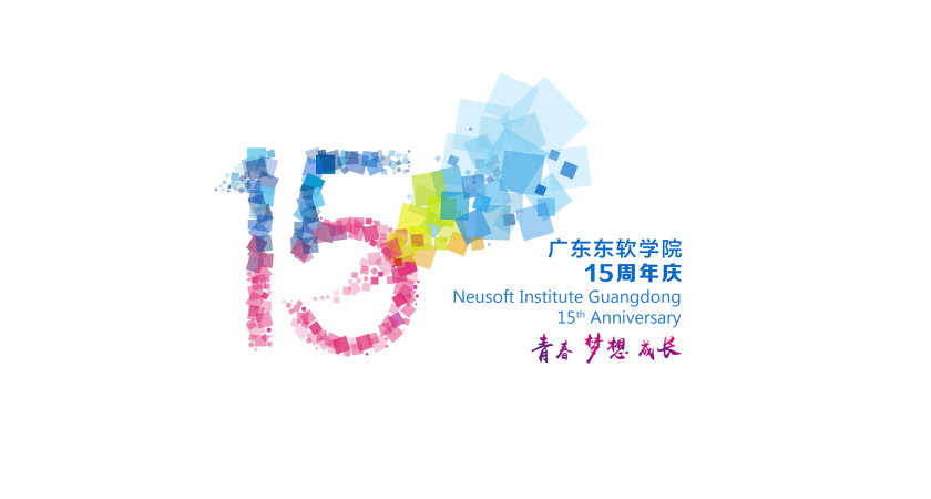 标志含义解释:标志正形为阿拉伯数字“15”,由色彩缤纷、大小各异的色块自由组合而成,整体营造出一种愉悦、喜庆的气氛。这些方块自由放大、缩小、聚集、互动,象征着学院多元化、国际化风貌。整体颜色为蓝、红、黄、绿等的渐变,蓝色象征IT大学、红色象征蓬勃发展、绿色象征学院的青春与成长。