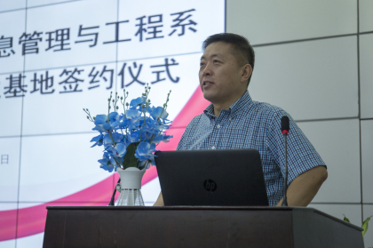 信工系主任李连发表讲话,他指出建设校外实践与就业基地是我院深化校企合作的重要举措,有利于强化学生职场认知和职业规划能力,在实践中提升职业素养和技能,增长智慧与才干,科学规划人生发展目标。