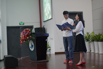 作为教师代表发言的国际教育学院的李望华老师将“保有一颗感恩的心、保有敢于担当的勇气、给予自己智慧”三个建议送给了毕业生,希望毕业生们用感恩格式化自己的心态,用担当为自己编程,用学习来为自己充电,把幸福和成功把握在自己的手上。