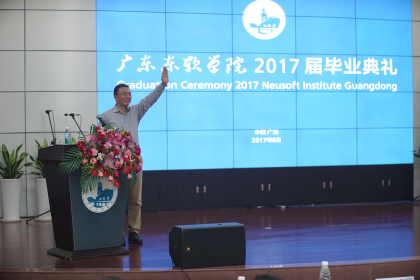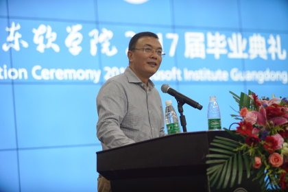 杨利院长在致辞中代表学院全体教工向毕业生表示热烈祝贺,向培育他们的老师、关爱他们的父母表示诚挚的感谢和祝福,他饱含深情地同毕业生一起回顾了学院三年的发展变化:办学规模增长了70%,校园环境、师资队伍、教学条件、国际化办学、学院声誉方面都取得了巨大的进步。学院的“软件工程”和“管理科学与工程”两个一级学科同时成为广东省省级重点学科、学院的“创业18MALL”获得国家科技部批准成为国家级众创空间、东软华南IT创业园落户滨水长廊、佛山市政府规划了以我们学院为核心建设“IT小镇”,学院的发展再次迎来了新的机遇。