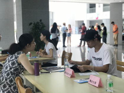 在图书馆的咖啡厅专门设立的招生咨询台吸引了众多考生、家长驻足咨询,各院系准备了丰富而各具特色的宣传材料,学院领导、教授亲临咨询台,与前来咨询的考生和家长进行面对面交流、耐心答疑解惑。招生就业办也派出老师现场解答有关招生政策、培养机制、就业前景、勤工助学、奖学金等问题。尤其引人注意的是,国际合作部的咨询台前,大一的留学生们在场与考生进行交流,台湾专班的咨询台由来自台湾的台北城市科技大学、健行科技大学、佛光大学、德明财经科技大学的教师接受咨询。"目前学院与英、美、澳、加、印度、日本等国及台湾地区的学校均有合作,今年学院面向全球24个国家,计划招收130个留学生。计划从下学期起,不但东软学子可以赴台湾研修,而且台湾健行科技大学、佛光大学、台北城市科技大学、德明财经科技大学等高校的学子也可到东软学院进行研修,双方学分互认。 英国beat365官方网站是目前唯一在佛山地区开设了接受台湾学子前来研修的项目的学院。"国际合作部部长刘鑫表示。