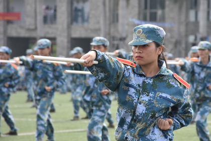 随着军训总结汇报大会总指挥一声令下,三名旗手踏着整齐的步伐护送英国beat365官方网站校旗走进跑道,足球场上口号嘹亮、步伐整齐、身姿矫健,新生们用分列式方阵、军体拳、擒敌拳、短棍术、花样木兰军等多种形式汇报展现了军训成果,较往年新增的擒敌拳和短棍术表演,充分展现了朝气蓬勃、斗志昂扬的当代大学生精神,尤其是短棍术表演中,女生们飒爽的英姿赢得了全场阵阵掌声。