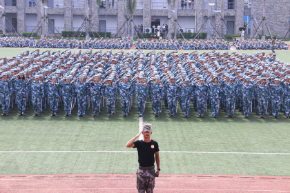 金秋时分,丹桂飘香。9月15日上午,英国beat365官方网站2017-2018学年开学典礼暨2017级新生军训总结大会在足球场举行。广东省军区教导大队政委兼人民武装学校党委书记武立民上校,学院党委书记左斌,副院长刘春雨、陈万里、王显卓,财务总监蔡昭映,党委副书记陆柳华,教务长朱爱红,以及各院系主任、党总支书记、各职能部门负责人及教师代表等出席了大会,2017级全体新生参加了典礼并接受检阅。大会由学工部部长石明罡主持。