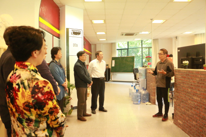 随后,在左斌书记等人的陪同下,陈育社院长一行参观了SOVO大学生创业中心、创业18MALL、华南IT创业园,还饶有兴趣地与师生们进行了交流。SOVO创业中心运营官张杰同学向来访人员分享道,将技术创新与学院课程相结合,构架出新的创业项目是他们正在做的事情,学院提供的平台和博士导师的专项辅导为他们团队提供了极大的帮助。