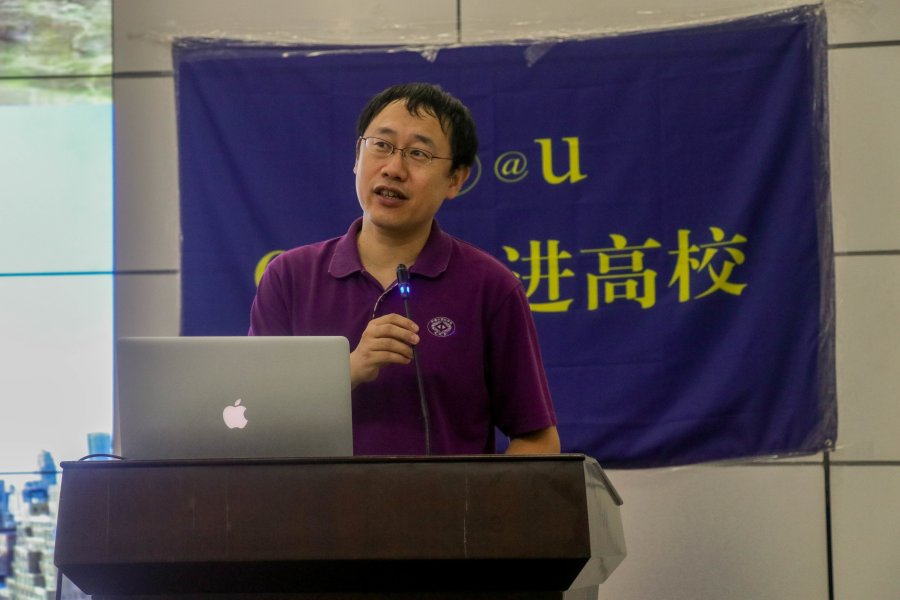 陈文光教授的报告深入浅出,首先介绍了计算机技术的重要性和信息技术的价值,他指出,信息技术不仅是搜索引擎、游戏、社交网络、手机等,更重要的是促进新的科学发现和工程实现。随后陈教授就如何有效地进行大数据处理编程展开了报告,介绍了大数据的理念与应用,大数据处理程序设计特点以及现有大数据处理框架如Mapreduce,spark的优缺点,让师生既了解到了图计算的最新进展也展示了科学研究的思路与方法,受益匪浅。