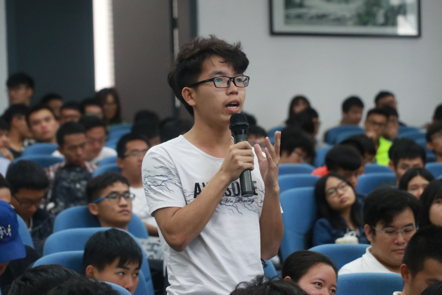 演讲之后,同学们积极举手提问,陈文光教授与在场同学进行了热烈的互动交流。左斌书记为陈文光教授赠送了精美礼品。