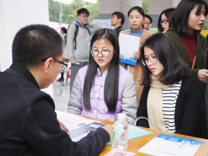 12月13日下午,招就办在ALGOL、BASIC教学楼中庭举行2018届信息管理与工程系毕业生专场招聘会。佛山市香道尔科技有限公司,佛山聚商网络科技有限公司,佛山市禅信通科技有限公司,佛山市百昭电子有限公司,佛山市凯尔达展示货架有限公司等企业等共计34家企业前来招聘,涉及岗位包括市场营销经理、区域经理、招商专员、外贸业务员、平面设计师、电商推广员等岗位,近300名毕业生到场参与应聘。