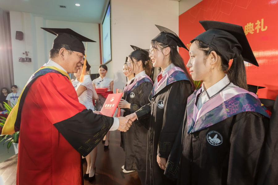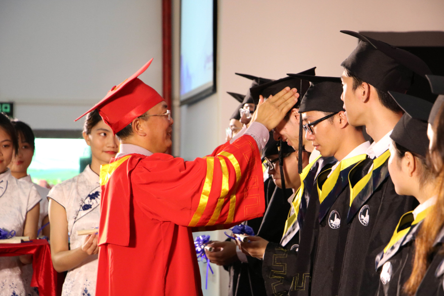 首届本科毕业生既见证学校快速发展的步伐,又代表了学校发展的又一里程碑。伴随着励志高昂的音乐,校长杨利为458位毕业生代表举行拨穗礼,郑重地将学士帽上的流苏从右边换到左边,合影留念……庄严的仪式宣告学生们正式获得学士学位,并使学生们永远铭记这份学术价值和荣耀。