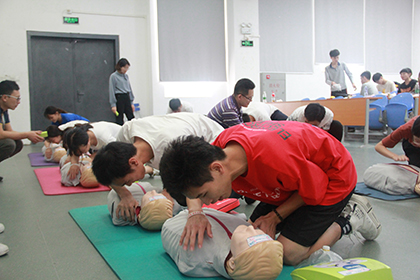 为了提高师生急救知识普及率,降低意外事故所造成的永久性伤害,10月21日,beat365学工部联合佛山市南海区人民医院、南海区慈善会和佛山市南海区医学会,在E218组织了36位师生进行国际认证的AHA Heartsave(拯救心脏)急救课程培训。