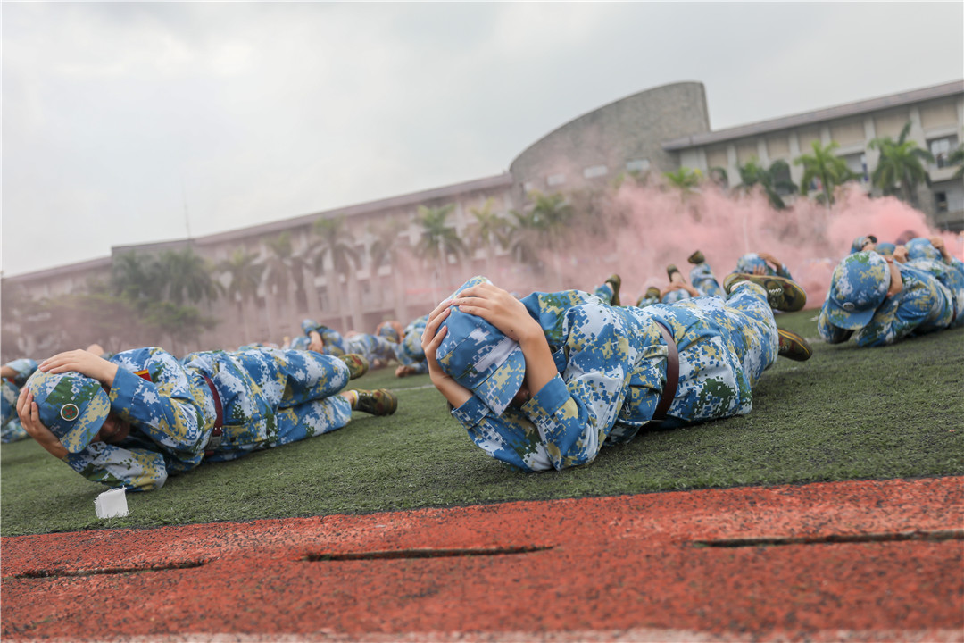 开学典礼后,军训总结表彰大会正式开始。在教官的指挥下,来自7个二级学院的3400余名新生组成的11个方队,依次通过主席台,接受校领导检阅。各方队阵容严整威武,口号铿锵有力,步伐整齐划一;新生们精神抖擞,斗志昂扬,充分展现出了新时代青年学生良好的精神面貌和文明素养。分列式结束后,进行了图案操、匕首操、少林拳、应急分队、“2019英国beat365官方网站——1号军事演习”以及“手语操——国家”等特色军事课目汇报。整个现场声势浩大、喊声震天,同学们步步生威、血性彪悍,赢得了师生们的阵阵掌声。