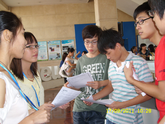 奥德科技也是一家“老牌”企业。该公司的COO(人力资源总监)林俊浩也是大三学生,他在招聘现场忙个不停,俨然一名成熟的职业经理人形象。2009年10月,林俊浩通过报名、笔试、面试 、考核(一次项目考核、一次日常表现考核)才转为行政部正式职员;2010年11月,他竞争上了COO。经过一年多的锻炼,他获益匪浅,目前已确定毕业后在一家通信公司工作。
