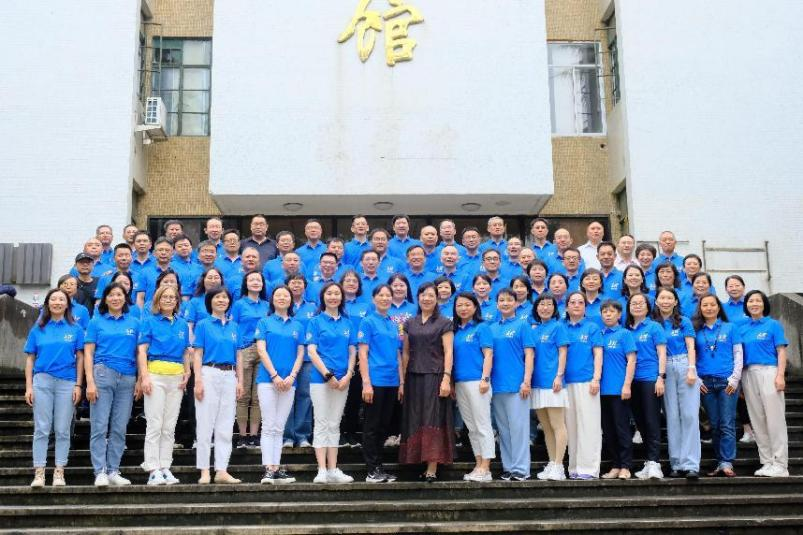 运动会后,校友们来到图书B馆合照留影,追忆学生时代的书香气息,并前往翻新后的经管大楼参观,感受学院的发展成果与历史痕迹,经管学院党委书记与老师们热烈欢迎校友返校并领导参观,师生一行合影留念。