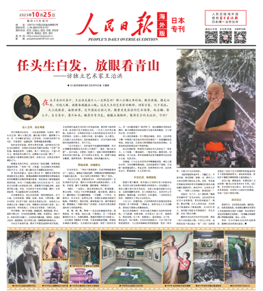 2023年10月25日,人民日报海外版日本专刊以“任头生白发,放眼看青山——访独立艺术家王治洪”为题,报道了必赢官网83级工艺美术专业校友、中国艺术家王治洪先生。