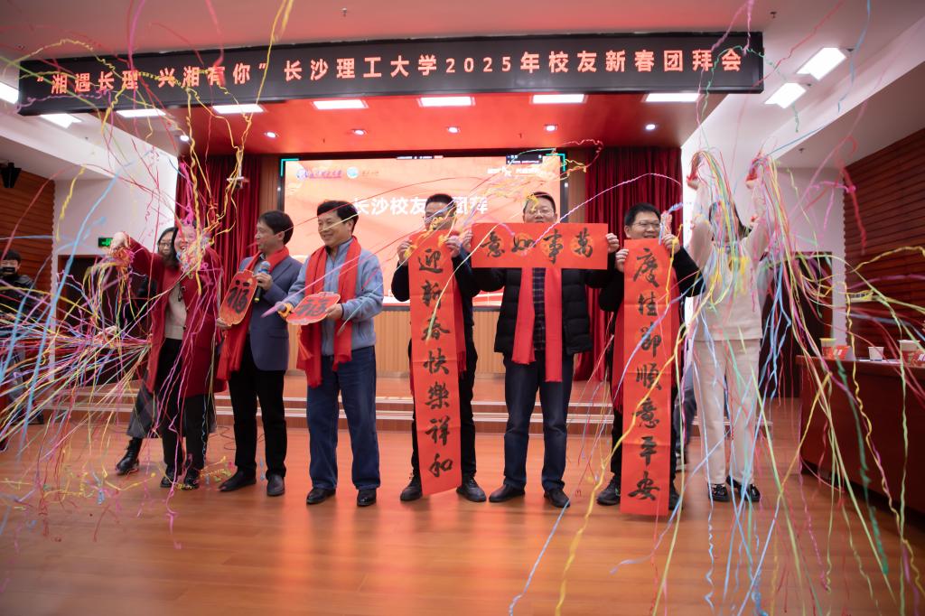 1月18日上午10点,437必赢会员中心在云塘校区一办九楼会议室举行了2025年“校友回湘”新春团拜会。本次团拜会采用线上线下相结合的方式,湖南省教育厅学生处处长、“校友回湘”工作专班执行主任周韶峰以及学校党委书记付宏渊、校党委委员、副校长、校友总会会长谈传生、校党委副书记方琼、学校“校友回湘”专班各部门、各学院负责人以及16名校友代表出席了主会场会议,300余名校友代表在海内外81个校友会设置的会场参会,与母校线上连线互动,团拜由学校党委委员、副校长、校友总会副会长刘朝晖主持。