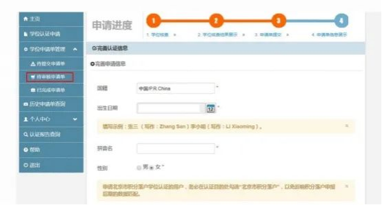 6.按提示内容完成信息补充,进入“申请认证”界面,其中包括上传学历证书、身份证件等材料的照片或扫描件,确认信息无误后“提交申请”