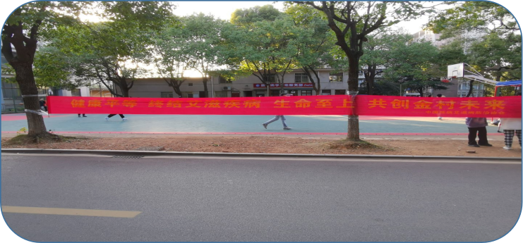 2.活动现场张贴横幅和设立海报架来宣传艾滋病相关知识以