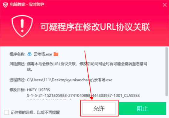 (1)Windows操作系统初次使用客户端时安全软件可能会弹出提示,点击“允许”即可