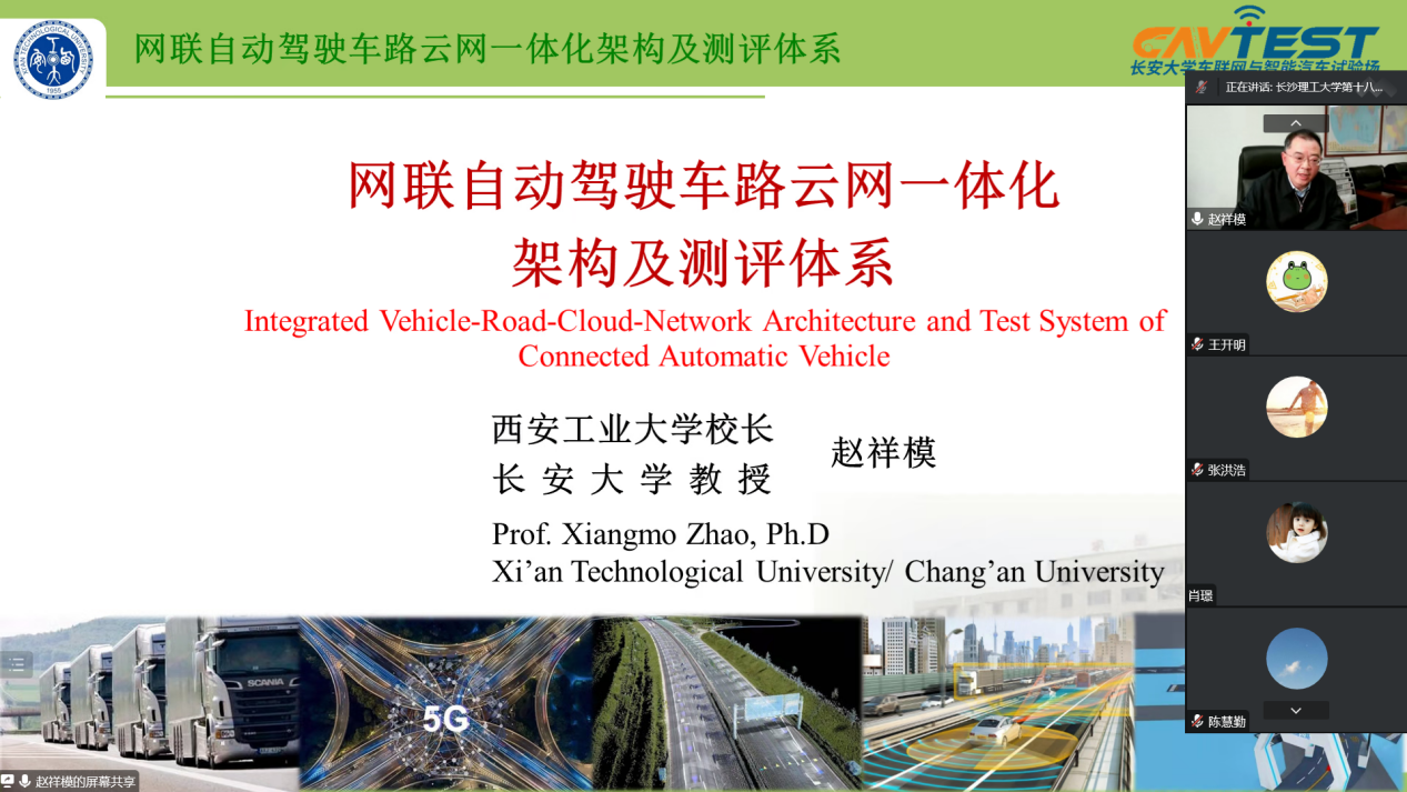 赵祥模做了题为《网联自动驾驶车路云网一体化架构及测评体系》的精彩报告,全方面的介绍了网联化自动驾驶系统车路云网体系的总体建设思路与总体构架。