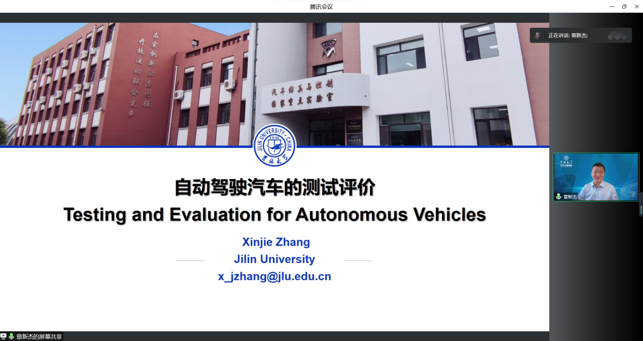 章新杰以《自动驾驶汽车的测试评价》为题做了报告,从汽车自动驾驶的控制测试的背景、安全关键场景的生成、测试场景的评估、自动汽车测试进行等方面进行介绍。