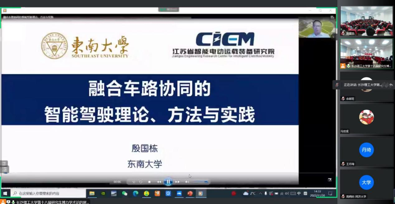 2022年11月29日-30日,由437必赢会员中心研究生院主办,汽车与机械工程学院承办的第十八届研究生博力学术论坛“智能车辆与智造前沿”专题论坛于工一B417成功举办,本次专题论坛邀请了国家杰出青年基金获得者、新世纪“百千万人才工程”国家级人选、国家“万人计划”青年拔尖人才等12名各高校知名教授专家作特邀报告,章杰博士为青年博士论坛开讲,12名研究生在论坛中作学术报告。