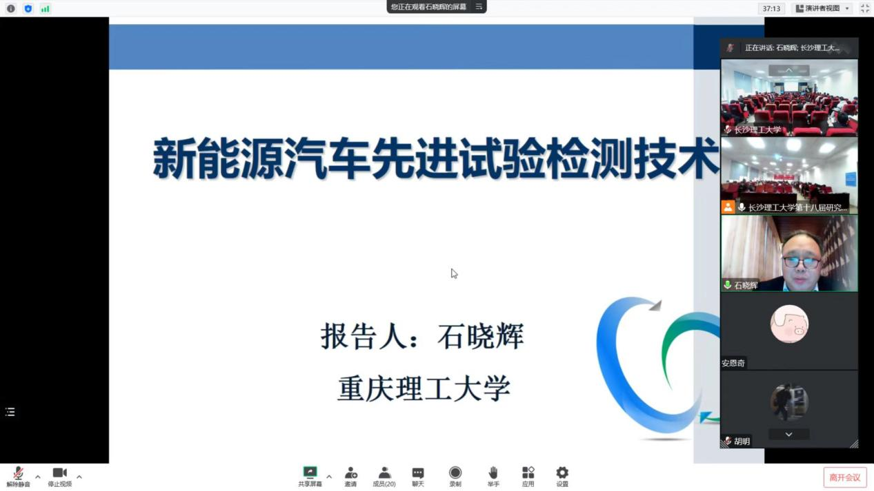 石晓辉以《新能源汽车先进实验检测技术》为题做了报告,就我国汽车实验与检测技术的发展趋势和节能与新能源汽车动力传动技术研究进行详细讲解。