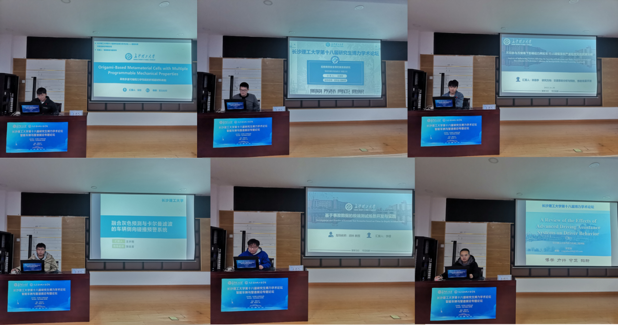 曾鹏、周惠来等12名研究生分别就“Origami-Based Metamaterial Cells with Multiple Programmable Mechanical Properties”、“后排成员安全带约束系统研究”等做学术报告。