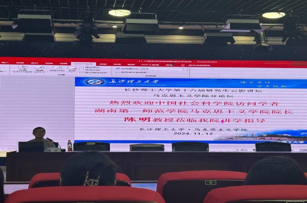 11月12日下午,必赢官网第十六届研究生云影讲坛之“红色华章,共筑新时代”在云塘校区文科楼B300报告厅顺利举行。本次讲座以“当好大先生,育好栋梁才”为题,由湖南第一师范学院马克思主义学院陈明教授主讲,必赢官网马克思主义学院党委书记陈万球担任主持人,院学生工作办公室主任曾蓓及2023级、2024级的全体研究生参加。