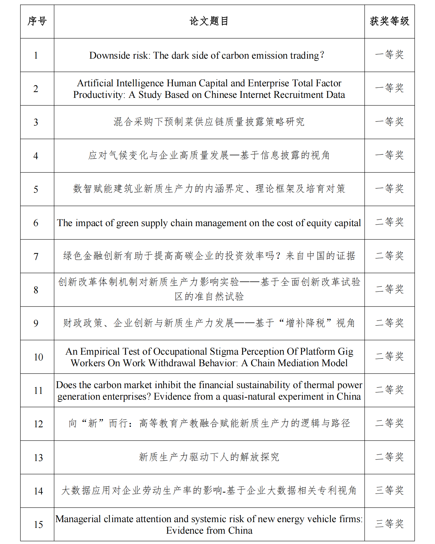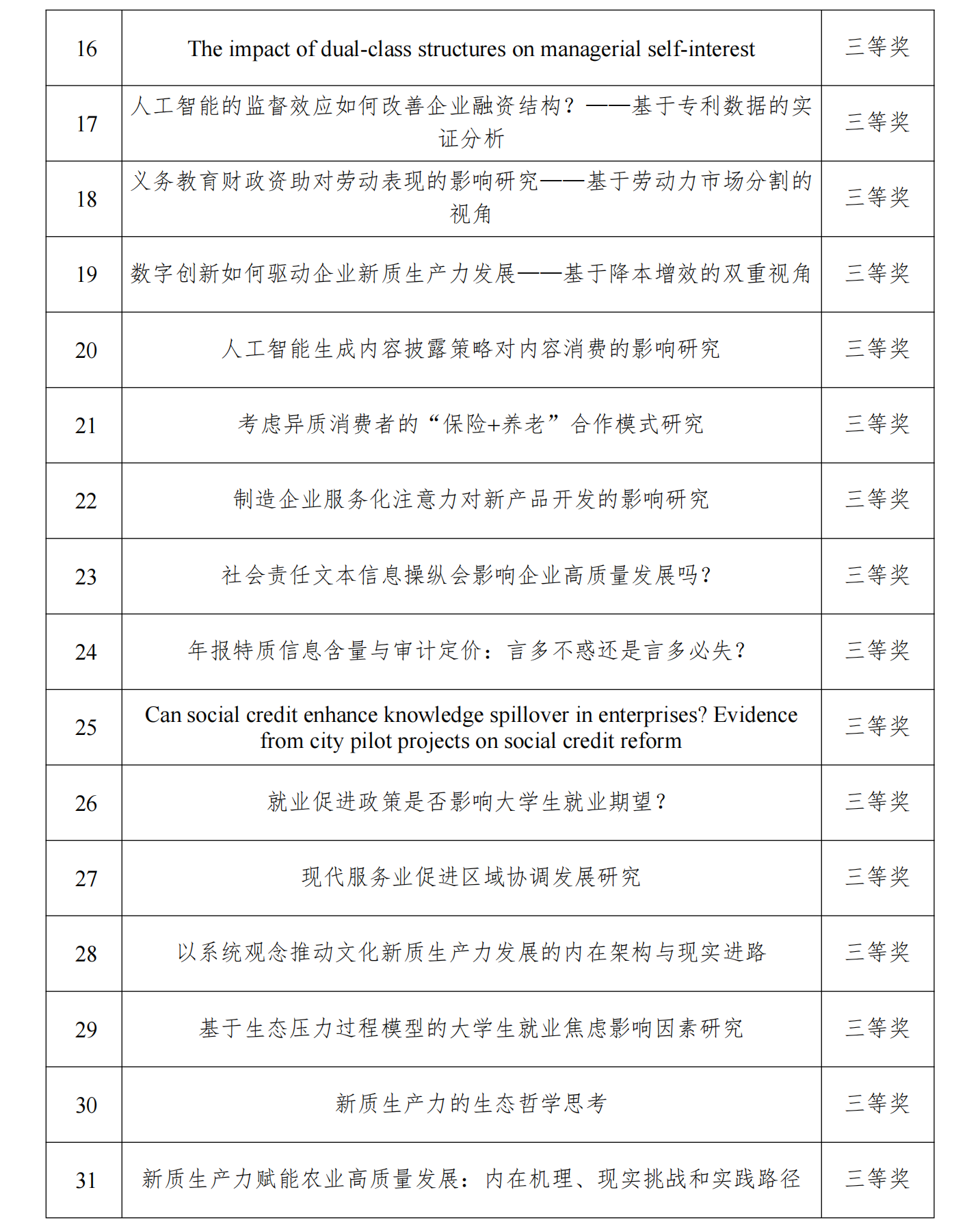 由437必赢会员中心研究生院主办,经济与管理学院承办的437必赢会员中心第二十届研究生博力学术论坛“新质生产力与创新发展”专题论坛征文活动共收到投稿论文53篇。经专家评审,共评出获奖论文31篇,其中一等奖5篇、二等奖8篇、三等奖18篇,现将拟获奖论文名单予以公示,公示期为2024年11月27日-12月2日,如有异议请联系经管学院周老师(0731-85222091)。