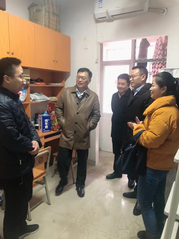 1月24日下午,正值大年三十除夕万户团圆之时,437必赢会员中心副校长谈传生在科学研究部副部长王建辉、研究生院副院长田上、电气学院党委副书记陈仁凯、公寓中心阳伶老师和化学学院研究生辅导员孙佳乐等陪同下,深入学生寝室走访看望留校过年两名研究生,了解他们的学习和生活情况,向他们送去亲切的问候和新春的祝福。