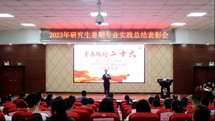 最后,研究生院副院长(主持工作)何忠明为表彰大会作了总结致辞。他表示,今年暑期专业实践,长理研究生充分发挥所学所长,跋山涉水,深入基层,54支实践团分别在四个内容中学思知行,建言献策:“一是投身乡村振兴,学思践悟新时代;二是研践科技创新,建设人才强国;三是深入社会服务,奉献强国力量;四是赓续红色基因,树立青年担当。”他鼓励广大长理研究生积极参加社会实践活动,厚植情怀,扎根红土。