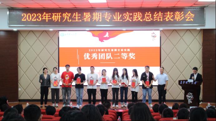 在欢快的乐曲声中,各位与会领导为30支暑期实践优秀团队颁布奖项。本次表彰大会共诞生了6支一等奖团队、9支二等奖团队和15支三等奖团队,获得优秀团队一等奖的6支团队依次上台分享他们的实践成果,丰富的成果和精心的演讲收获了现场的阵阵掌声。